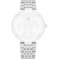Esta correa de reloj de la :marca está hecha de acero inoxidable y se adjunta al reloj mediante pasadores de acero. La banda tiene un ancho de 18 mm y se cierra mediante un cierre desplegable con botones pulsadores. La correa no tiene montura recta, lo que significa que esta correa sólo es adecuada para los relojes que se indican a continuación.
