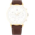 Esta correa de reloj de la :marca está hecha de cuero y se adjunta al reloj mediante pasadores de resorte. La banda tiene un ancho de 22 mm y se cierra mediante un hebilla. La correa tiene una montura recta, lo que significa que esta correa es adecuada para todos los relojes de la Tommy Hilfiger con montura recta.