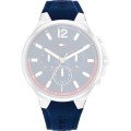 Esta correa de reloj de la :marca está hecha de goma de silicona y se adjunta al reloj mediante pasadores de acero. La banda tiene un ancho de 21 mm y se cierra mediante un hebilla. La correa no tiene montura recta, lo que significa que esta correa sólo es adecuada para los relojes que se indican a continuación.