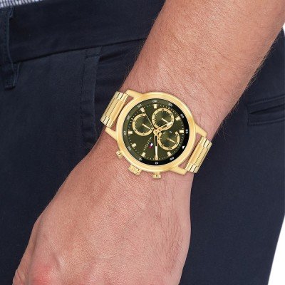 Este reloj marca Tommy Hilfiger tiene una caja de Inox con un diámetro de 46 mm y cuenta con una correa de Inox. Dentro de la caja se encuentra un mecanismo de Seiko Instruments Inc. de alta calidad el cual esta protegido por un cristal Mineral.