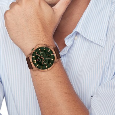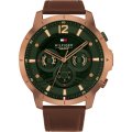 Este reloj marca Tommy Hilfiger tiene una caja de Inox con un diámetro de 50 mm y cuenta con una correa de piel. Dentro de la caja se encuentra un mecanismo de Seiko Instruments Inc. de alta calidad el cual esta protegido por un cristal Mineral.
