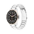 Este reloj marca Tommy Hilfiger tiene una caja de Inox con un diámetro de 43 mm y cuenta con una correa de Inox. Dentro de la caja se encuentra un mecanismo de Seiko Instruments Inc. de alta calidad el cual esta protegido por un cristal Mineral.