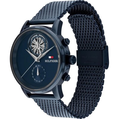 Este reloj marca Tommy Hilfiger tiene una caja de Inox con un diámetro de 40 mm y cuenta con una correa de metal. Dentro de la caja se encuentra un mecanismo de Seiko Instruments Inc. de alta calidad el cual esta protegido por un cristal Mineral.