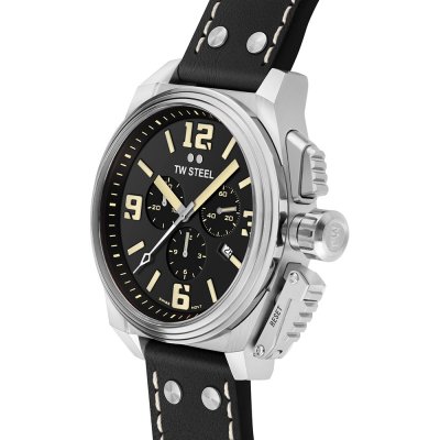 Este reloj marca TW Steel tiene una caja de Inox con un diámetro de 46 mm y cuenta con una correa de piel. Dentro de la caja se encuentra un mecanismo de Ronda de alta calidad el cual esta protegido por un cristal Zafiro antirreflectante solitario.