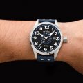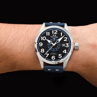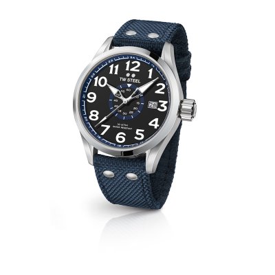 Este reloj marca TW Steel tiene una caja de Inox con un diámetro de 48 mm y cuenta con una correa de Tela sobre piel. Dentro de la caja se encuentra un mecanismo de Miyota de alta calidad el cual esta protegido por un cristal Mineral duro.
