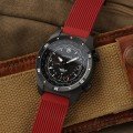 El Air Pro Automatic es un reloj de aviador de estilo clásico moderno fabricado para ofrecer precisión y resistencia. En la esfera tridimensional es posible seguir hasta tres husos horarios, con la indicación del segundo huso horario mediante una aguja GMT. El reloj cuenta con dos coronas grandes y fáciles de manejar: una a las 4 para la hora y la segunda a las 2 para las funciones GMT. Todo es claramente legible gracias a las agujas y marcadores de gran tamaño rellenos de Super-LumiNova® suiza y a la aguja GMT específica. El reloj funciona con un movimiento automático Sellita SW330-2 de fabricación suiza con una reserva de marcha de 56 horas, visible a través del fondo de la caja. El reloj cuenta además con protección antichoque con certificación ISO y resistencia al agua de hasta 20 ATM. Se lleva con una cómoda correa de caucho auténtico fácil de cambiar y también está disponible con una correa de acero inoxidable.