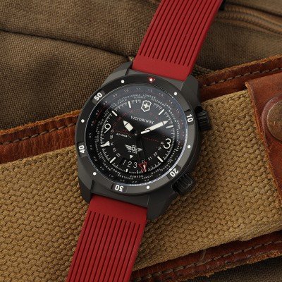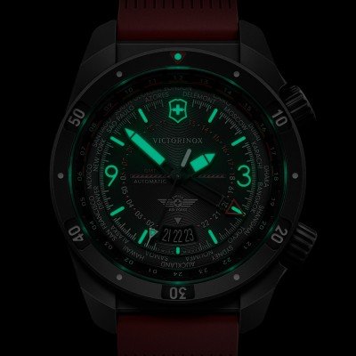 Este reloj marca Victorinox tiene una caja de Inox con un diámetro de 43 mm y cuenta con una correa de Goma. Dentro de la caja se encuentra un mecanismo de Sellita de alta calidad el cual esta protegido por un cristal Zafiro antirreflectante solitario.