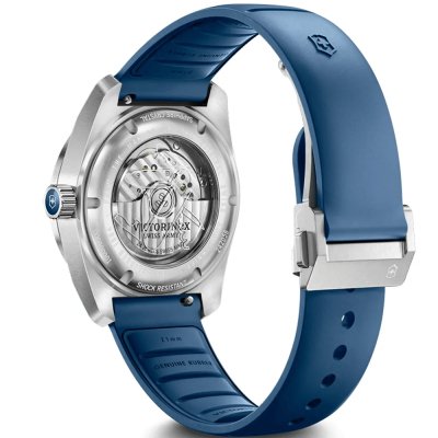 Este reloj marca Victorinox tiene una caja de Inox con un diámetro de 39 mm y cuenta con una correa de Goma. Dentro de la caja se encuentra un mecanismo de La Joux-Perret de alta calidad el cual esta protegido por un cristal Zafiro antirreflectante solitario.