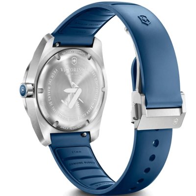 Este reloj marca Victorinox tiene una caja de Inox con un diámetro de 39 mm y cuenta con una correa de Goma. Dentro de la caja se encuentra un mecanismo de Ronda de alta calidad el cual esta protegido por un cristal Zafiro antirreflectante solitario.