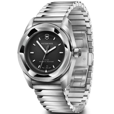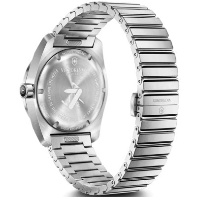 Este reloj marca Victorinox tiene una caja de Inox con un diámetro de 39 mm y cuenta con una correa de Inox. Dentro de la caja se encuentra un mecanismo de Ronda de alta calidad el cual esta protegido por un cristal Zafiro antirreflectante solitario.