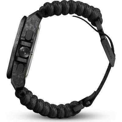 Este reloj marca Victorinox tiene una caja de Carbón con un diámetro de 43 mm y cuenta con una correa de Textil. Dentro de la caja se encuentra un mecanismo de Ronda de alta calidad el cual esta protegido por un cristal Zafiro.