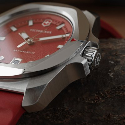 Este reloj marca Victorinox tiene una caja de Inox con un diámetro de 41 mm y cuenta con una correa de Goma. Dentro de la caja se encuentra un mecanismo de Ronda de alta calidad el cual esta protegido por un cristal Zafiro antirreflectante solitario.