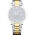 Esta correa de reloj de la :marca está hecha de acero inoxidable y se adjunta al reloj mediante pasadores de resorte. La banda tiene un ancho de 21 mm y se cierra mediante un cierre desplegable con botones pulsadores. La correa no tiene montura recta, lo que significa que esta correa sólo es adecuada para los relojes que se indican a continuación.