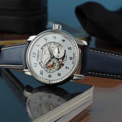 Este reloj marca Zeppelin tiene una caja de Inox con un diámetro de 42 mm y cuenta con una correa de piel. Dentro de la caja se encuentra un mecanismo de Miyota de alta calidad el cual esta protegido por un cristal K1 Mineral.